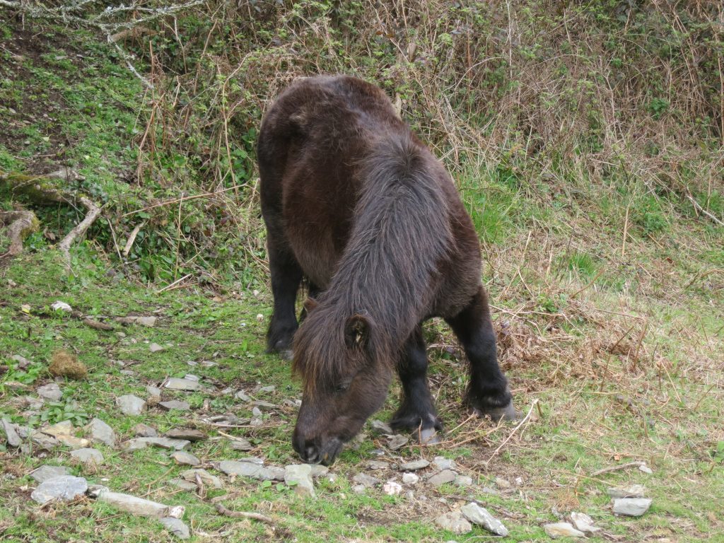 A last look back at the harbour and houses of PortloeClimbing from PortloePortholland – the hamlet has been turned into a Welsh village for filming of Miss Peregrine’s Home for Peculiar Children. It has been augmented by four houses, a fully functioning pub, a fake village shop and a second post office, and the graveyard by the sea for the purposes of filming which is set to run for several weeks.Caerhays Castle – I didn’t visit, but did stop at the nearby beach café at Porthluney Cove for a nice piece of cake and a drink.Looking past the rocky Greeb Point to Dodman Point, further away than it looks, but a key milestone for today’s walk.Climbing away from Hemmick BeachA stone cross, helpfully named Stone Cross on my Ordnance Survey map, on Dodman Point. My guide book advised me it is made of granite but offered no further information. The words on its base say “In the firm hope of the second coming of our Lord Jesus Christ, and for the encouragement of those who strive to serve Him, this Cross is erected A.D. 1856.” The views stretch back past the island of Gull Rock and its nearby Nare Head, to Zone Point and St Anthony Head to the left of the cross, with the coast of Cornwall beyond stretching towards The LizardDartmoor ponies help to improve the vegetation mix at Dodman Point Looking down on Gorran HavenThe harbour at Gorran Haven. A good spot for an ice cream.