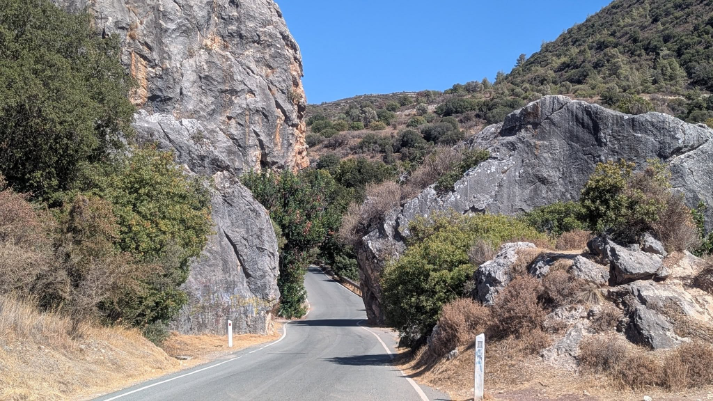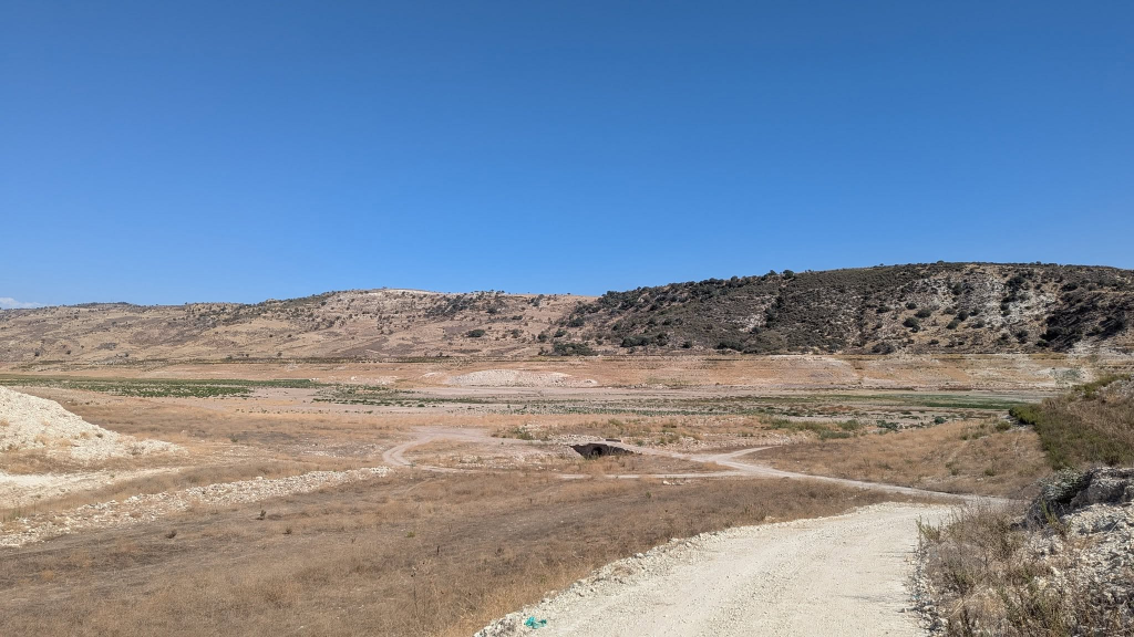 View north from PissouriA quiet morning in the squareDinner at the Vine LeafEarly morning not-parkrun along the beach promenade at Pissouri BayOut for a drive into the hillsEarly morning view from the villa across to the Akrotiri peninsulaPreparations at Paphos Castle for a concern, as I do a long training run in preparation for my half-marathon coming next month.I ran the full length of the coastal footpath – it was very hot and I wilted a bit towards the endA quick stop on the way back from lunch at the Last Castle – the intention was to take photos of each of us here, and somehow stich them together to show us both through the heart, but we never quite managed it, so here is the one with Lucy.Asprokemmos Reservoir, with water levels very lowSo low that we travelled down onto the dry base of the reservoirA Venetian bridge, which is sometimes submerged beneath the reservoirThe abandoned Turkish-Cypriot village of Foinikas – some of the buildings are at times immersed in the water, earning it the name ‘sunken village’.The remains of what is said to be a sugar factory near KoukliaOut for an early morning run on the cliffs near the villaAn impressive olive tree in Avdimou is thought to be about 700 years old.Trozena Iron Bridge, a Bailey Bridge built by the BritishThe restored “water dang”, dating from 1890.Taking the horse out for a walkGrapes in the valley looking down to Pissouri BayTzelefos Bridge, probably the best known of the Venetian bridges of CyprusEnjoying the view of the bridgeStill quiet in the Square, but a bit more activity